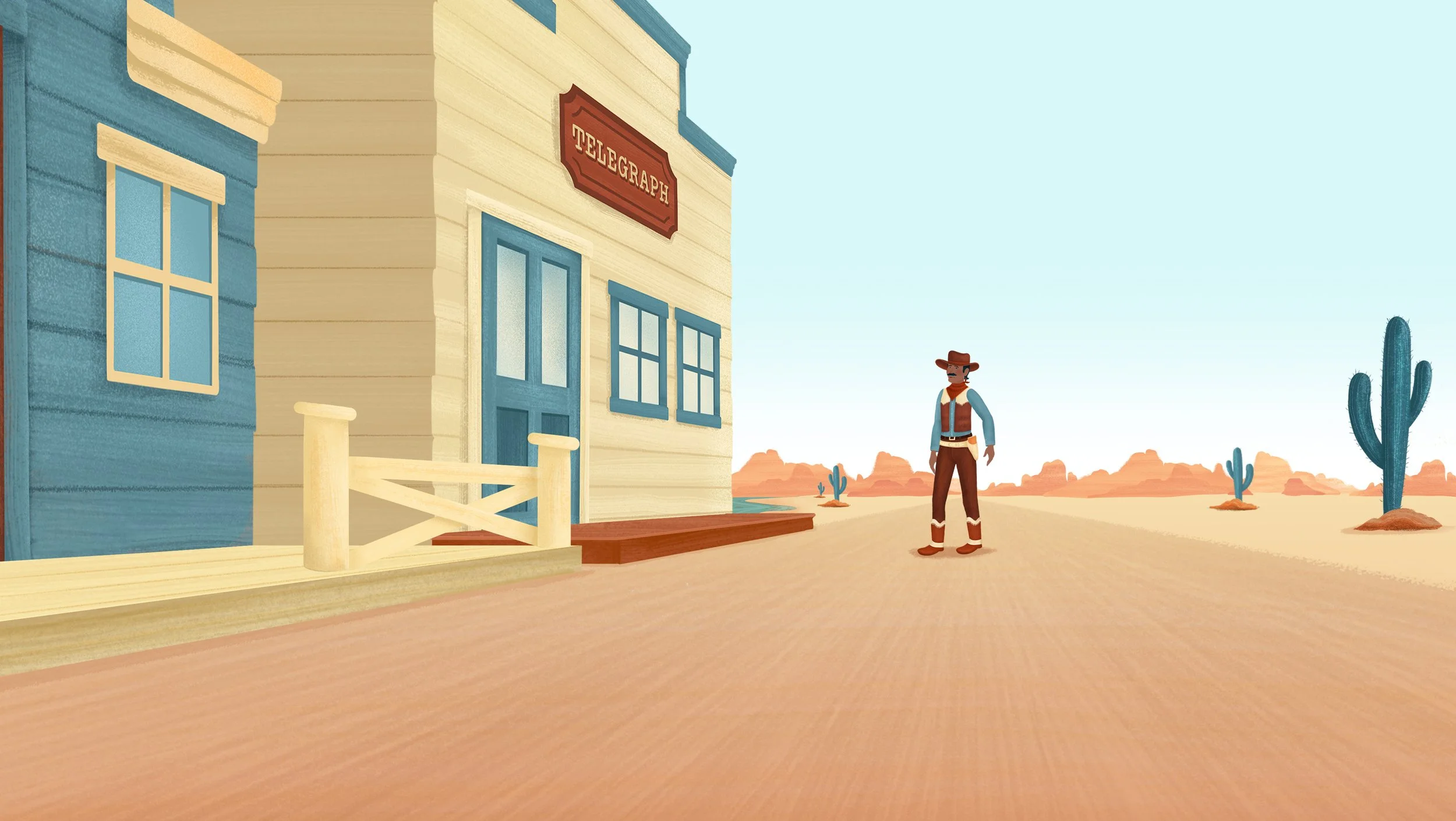 The characters, from sheriffs to saloon owners, were designed with unique personalities, adding depth and charm to the setting while helping to tell the story in a playful, engaging way.